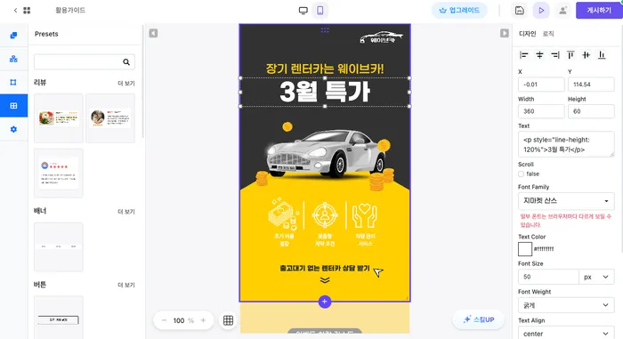 예를들어 웨이브온과 같은 마케팅 콘텐츠 제작 노코드툴은 마케팅을 위한 이벤트 랜딩페이지를 드래그 앤 드랍 방식으로 개발 지식 없이 제작 할 수 있습니다.