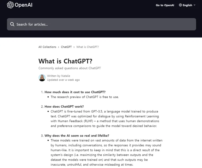 챗GPT는 대규모의 텍스트 데이터를 학습하여 사람이 쓴 것과 유사한 자연스러운 텍스트를 생성할 수 있습니다. 이 모델은 주어진 입력에 대해 응답을 생성하므로, 사용자와 대화를 나누거나, 주어진 주제에 대한 글을 작성하는 등 다양한 쓰임새를 가지고 있습니다. 원래 사람과 자연스럽게 대화를 나누는 데 초점을 맞춰 개발되었지만, 이후로 이를 확장하여 다양한 언어 생성 작업에 활용되고 있습니다. 중요한 것은 챗GPT가 학습한 내용은 오직 데이터만으로부터 왔다는 것입니다. 이는 챗GPT가 이해나 의식을 가지고 있는 것이 아니라, 단순히 학습한 패턴을 반복한다는 것을 의미합니다.