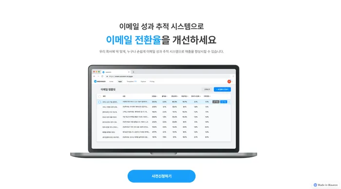 위에서 소개한 도구들을 ROI 분석에 활용하면, 기업은 정보에 기반하여 의사 결정을 내리고, 마케팅 전략을 최적화하며, 투자 수익률을 극대화할 수 있습니다. 다양한 데이터 분석 도구들 중 지금 바로 적용할 수 있는 이메일 전환율 부터 개선해 ROI를 높여보는 것은 어떨까요? 웨이브온은 9월 서비스 런칭을 앞두고 있습니다. 지금 사전 예약을 하시면 첫 달 1,000원에 사용 가능한 혜택을 드립니다. 가장 빠르게 웨이브온 서비스를 만나보세요!