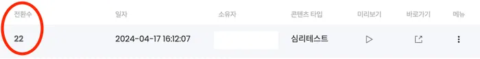 이처럼 내가 만든 랜딩페이지, 심리테스트를 몇 명이 조회했는지 알 수 있는 통계 기능이 있습니다. 사이트를 통해 이 프로젝트로 들어오는 사람이 몇 명인지, 혹은 이 프로젝트를 통해 사이트로 들어오는 사람이 몇 명인지 알 수 있다면 프로젝트의 성과 및 효율을 측정하는 데에 용이하겠죠. 이뿐만 아니라 웨이브온은 구글 애널리틱스 연동이 가능하여, 더 자세하고 빠른 성과 측정이 가능합니다.